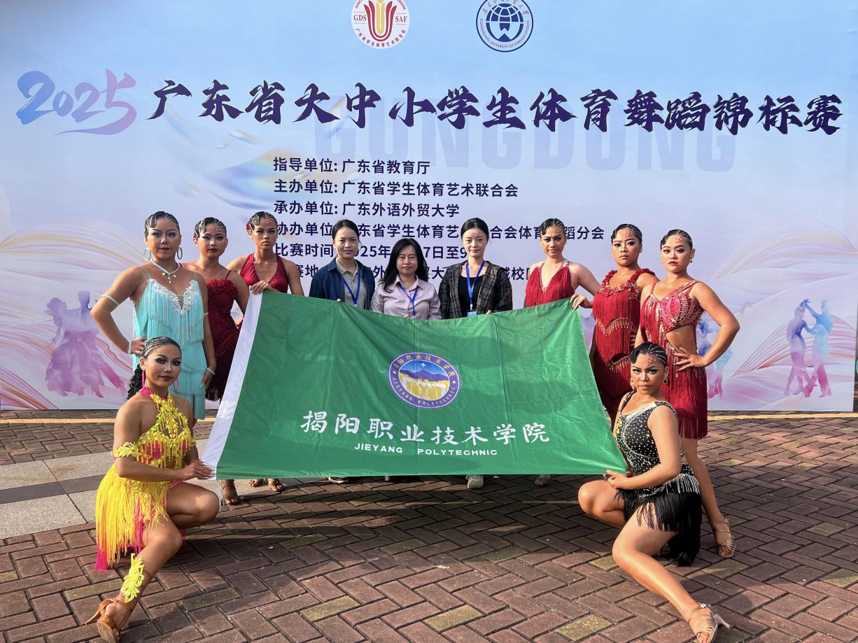 2025年11月7-9日,广东省大中小学生体育舞蹈锦标赛在广东外语外贸大学(大学城校区)体育馆隆重举行,此项赛事是由广东省教育厅指导、广东省学生体育艺术联合会主办的高水平赛事,吸引了来自全省各地共98所大中小学参赛,领队、教练及运动员人次共计一千九百余人。校团委副书记孙芬兰、艺体系教师陈冰、罗林苗带领队伍参赛。